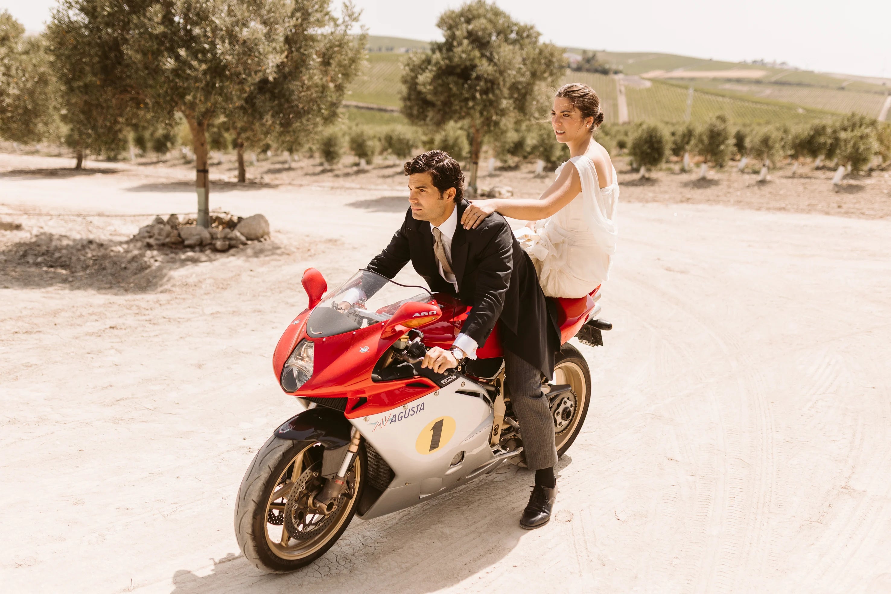 Leti se casó en Jerez de la Frontera con Piergiacomo, hijo de Giacomo Agostini mítico piloto de motociclismo, por lo que su salida de la ceremonia no pudo ser de otra forma que subidos a una moto.