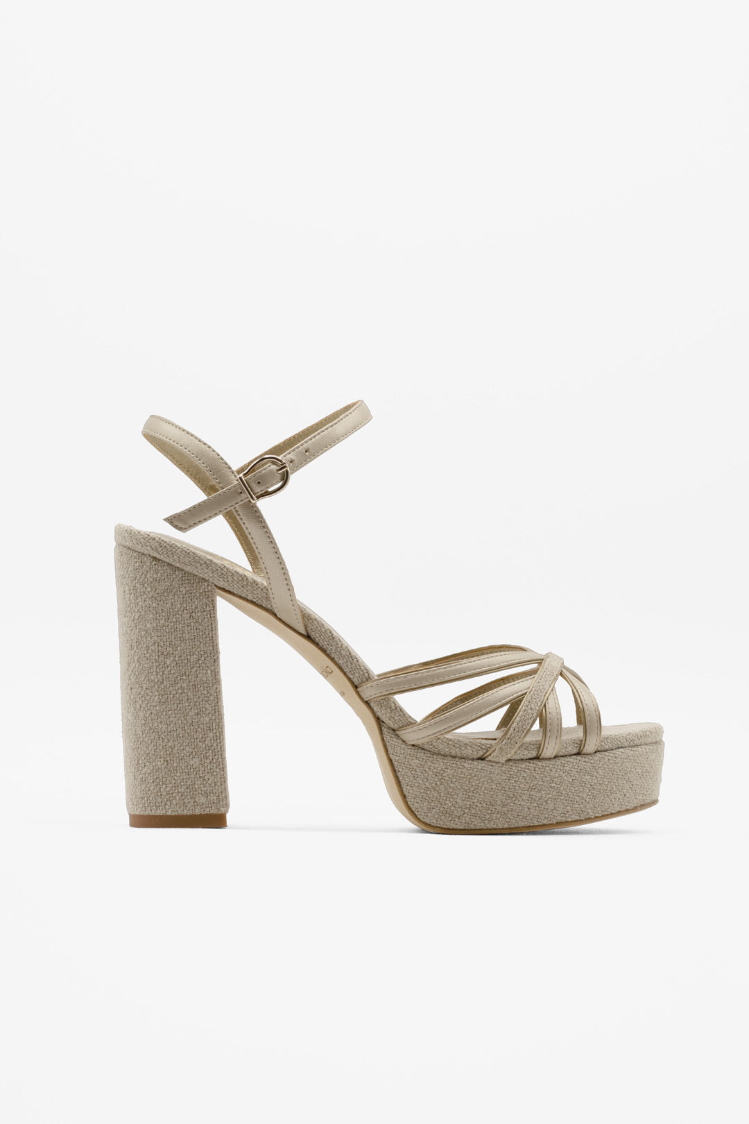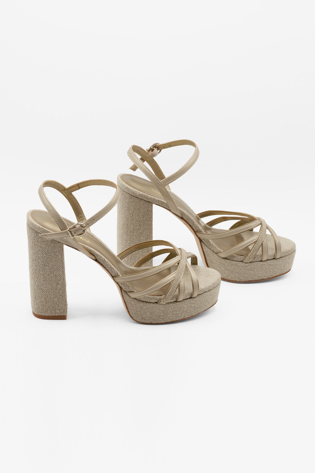 Sandalias de plataforma en lino y piel con tacón total de 11 cm.