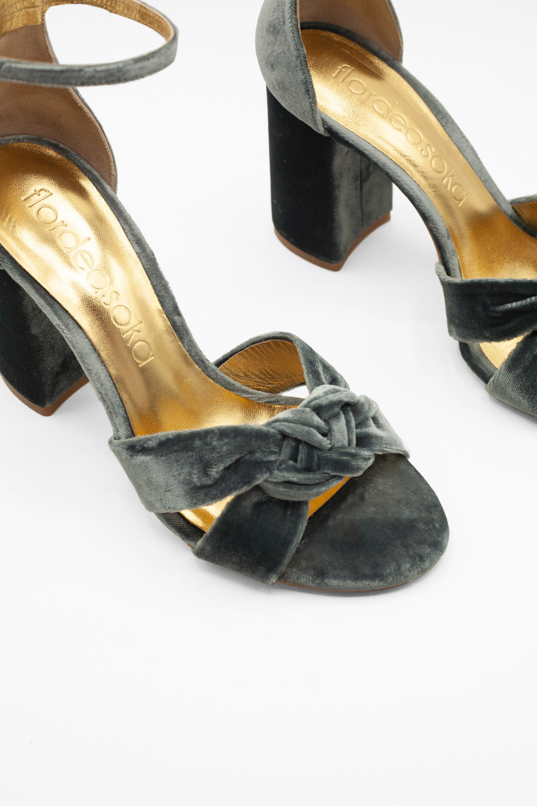 Sandalias de terciopelo en color azul con detalle nudo, un tono de azul vibrante con matices joya que ilumina cualquier look.