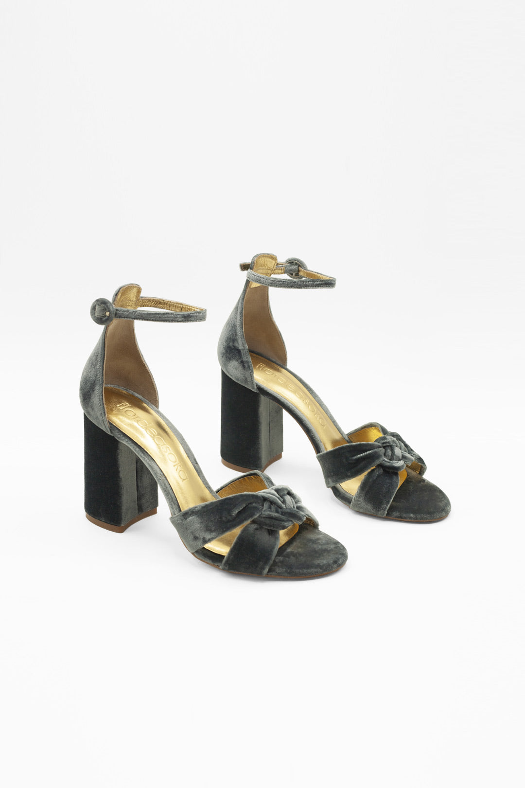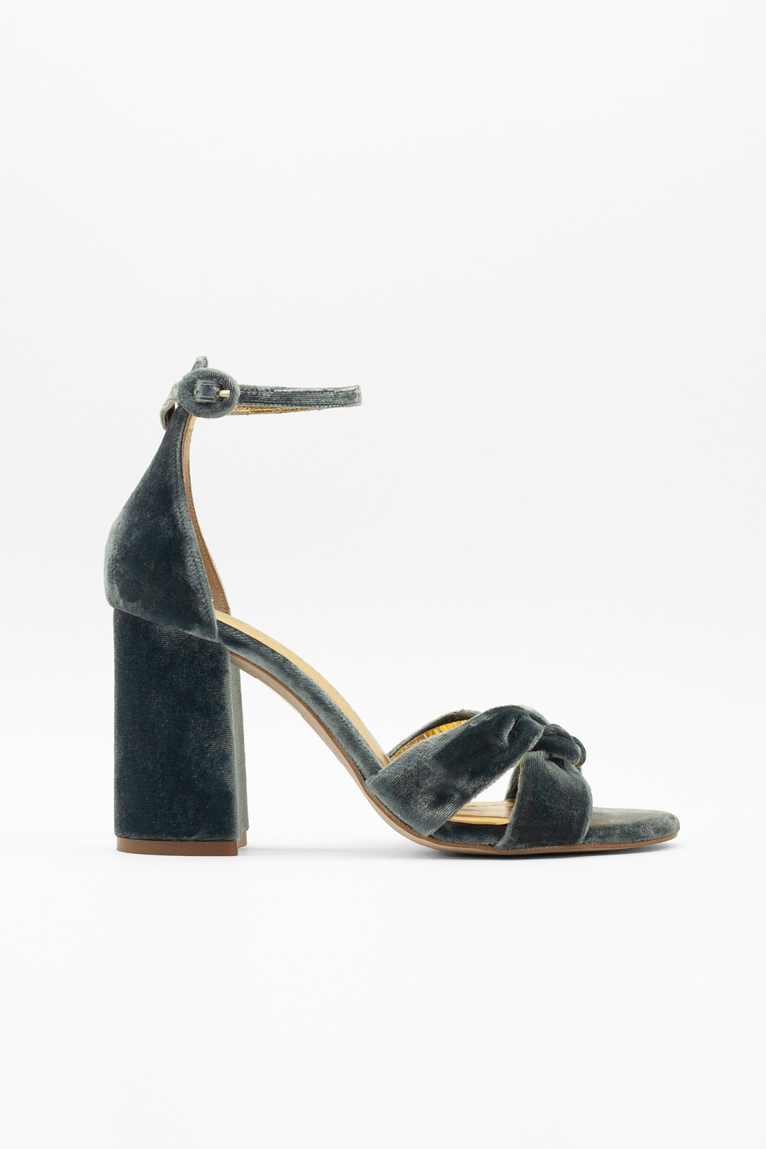 Sandalias azules con nudo en terciopelo azul y tacón bloque de 9 cm.