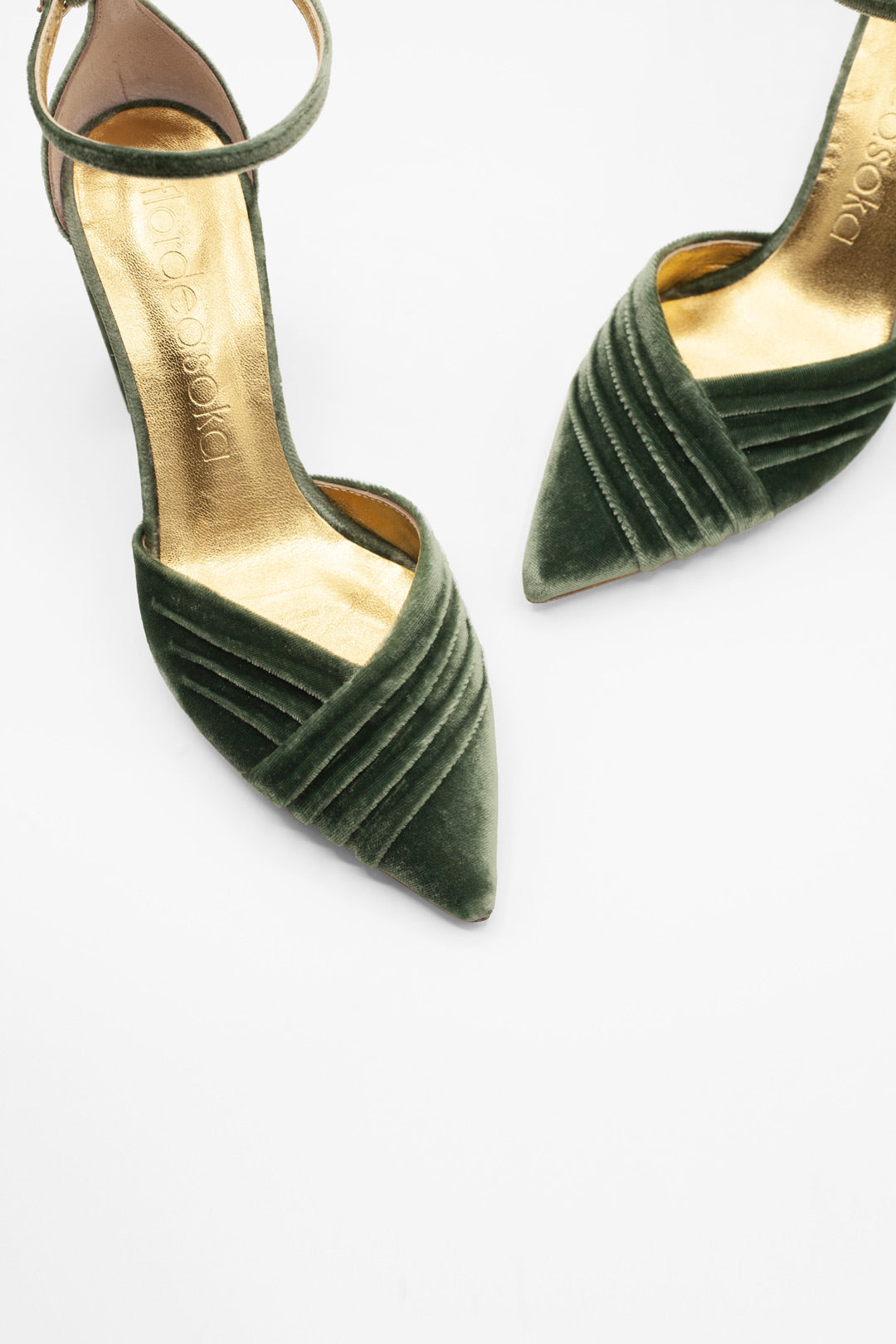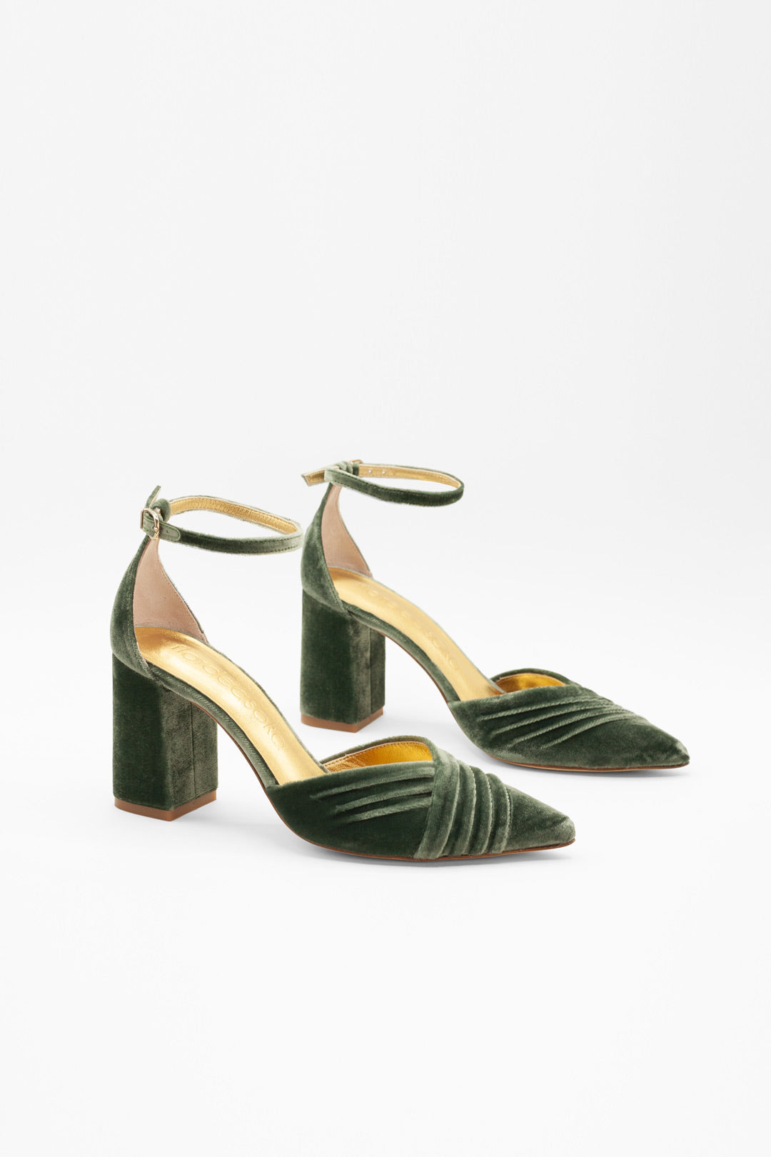 Zapatos de tacón para novia e invitada tipo salón en punta de terciopelo verde