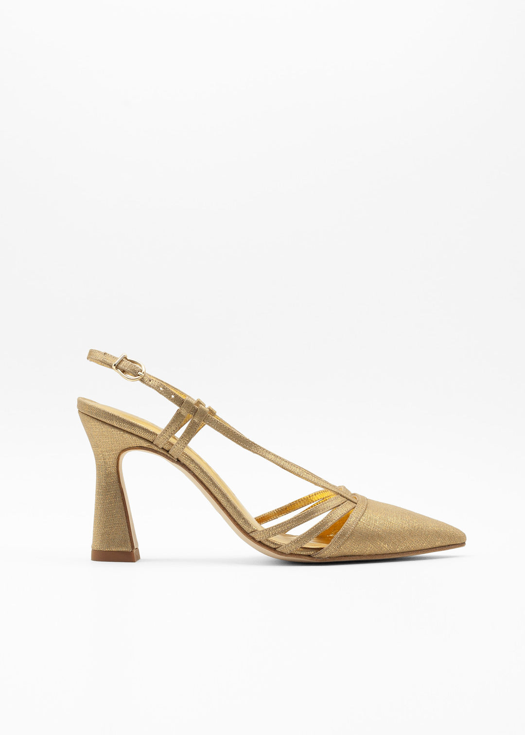 Encarna, la sposa che ha osato con una zeppa dorata in velluto